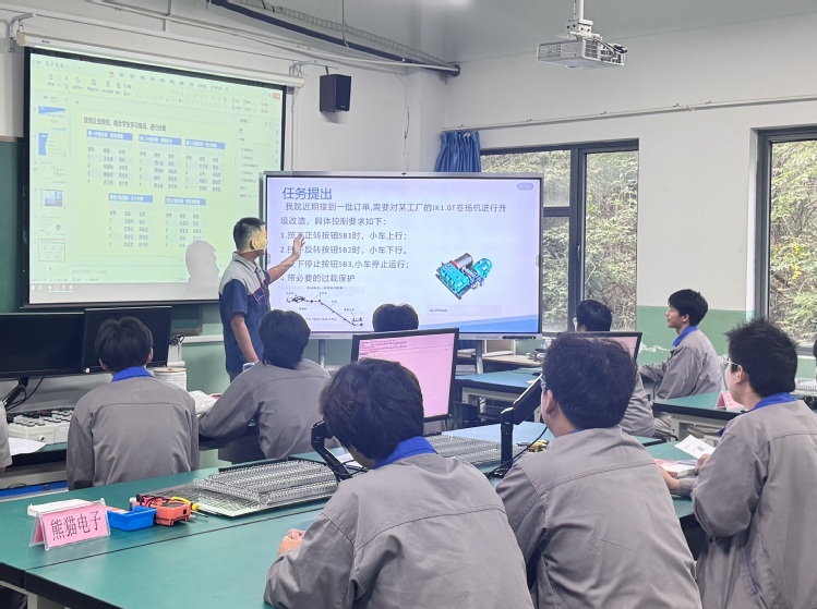 2025年10月15日,机电工程系陈垚、曹晨两位老师在学院高技能人才实训A楼209室,成功开设以“PLC控制三相异步电动机正反转”为主题的校级公开课。学院教务处和各系无课教师参与了此次活动。