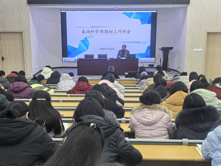 新春伊始,万物滋生。2026年3月2日下午,基础科学部召开新学期全体教师工作会议,会议由廖祥新主任主持,系部全体人员参加,七十余名教职人员全员到会。