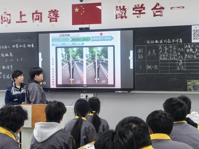本次示范课遵循一体化课程要求,以《四等水准测量》为核心课题。授课过程中干婷老师立足专业技能岗位需求,衔接理论与实操,规范演示仪器操作、数据观测计算,积极引导学生分组协作,践行“做中学、学中练、练中悟”理念,同时引用珠峰高程测量案例开展思政教育,引导学生感悟测绘工作者的坚守与担当,厚植专业情怀。