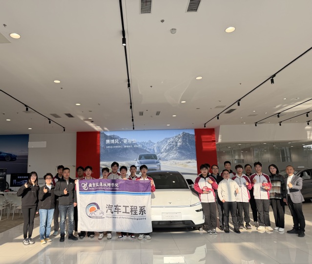 2025年11月13日下午,汽车工程系4名教师与13名同学共同走进南京东麒路特斯拉中心,开展了一场别开生面的特斯拉「特」别见面会。中心工作人员以高度的热情与专业态度接待了全体师生,为这场沉浸式企业体验活动拉开序幕。