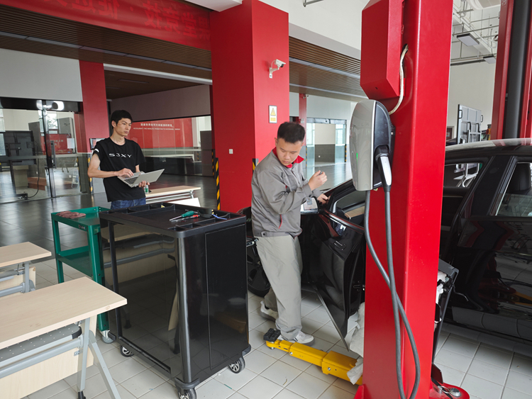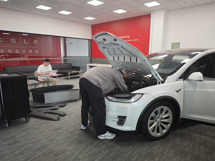 2025年5月26日下午,第五届特斯拉订单班实操技能考核在特斯拉校企合作中心顺利举行。本次考核由三位来自特斯拉企业的资深技师担任评委,围绕多个关键汽车维修项目展开,全面检验学员们的实际操作能力和职业素养。