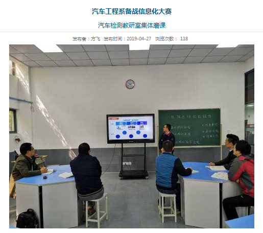 自2010年1月始,所有教室都配备了多媒体投影仪,2015年9月起所有实训实验室都配备了触摸一体机,一直以来,本专业所有任课教师都能够从容、规范的使用触摸一体机,实现上课使用多媒体课件,使用率高达100%。 本专业拥有大量的数字化教学资源,有教师开发的多媒体课件、视频、仿真软件,有购置的教学软件,如景格汽车虚拟实训中心软件、汽车制造仿真软件、景格汽车教学资源平台软件、汽车电控联网教学实训系统等。学校还有泛雅平台,超星学习通APP,为教师使用数字化教学手段,学生接收知识提供便利。