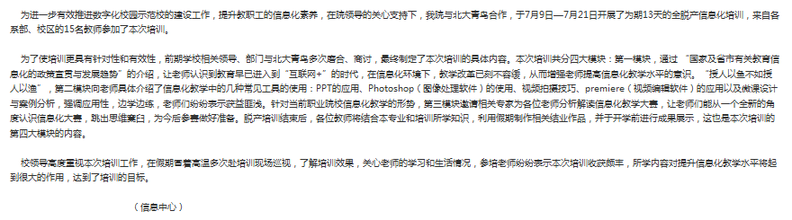 3 | 汽车维修综合实训 | 沈文龙 | 17汽修中专(1)(2) | 良 | 版面设计、集训基础视频、题库建设、任务点均已完成建设,并在集训过程中正常使用,目前正进行理论题库的组建,并进行考核试卷的出题测验操作 |